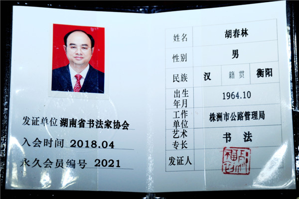 近日,株洲市公路局调研员胡春林收到了湖南省书法协会颁发的资格证书,正式成为省书法协会会员。目前,该系统已有胡春林、霍泽勇、夏佩杰3位省书法协会会员。